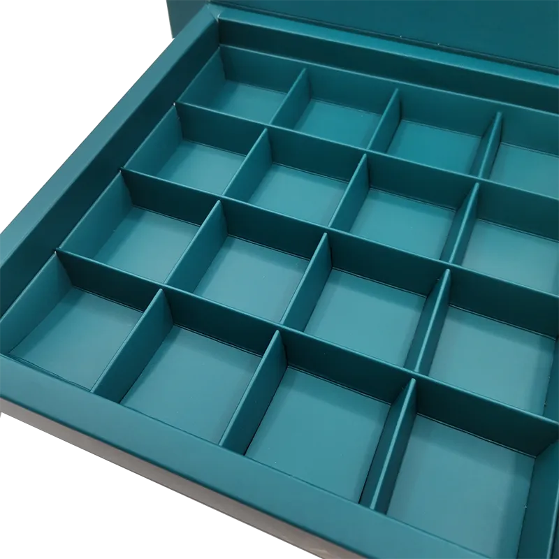 The box features a food-grade paper card insert, perfectly designed to divide and protect each delicate truffle, ensuring a flawless presentation.