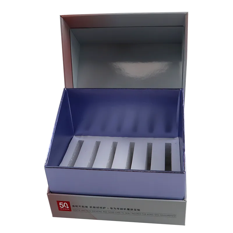 This is an elegant essence lotion packaging box with a white foam insert, suitable for holding 5 slender essence lotion items.